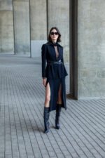 BerrIn Deri Kuşaklı Bağlamalı Ceket Siyah