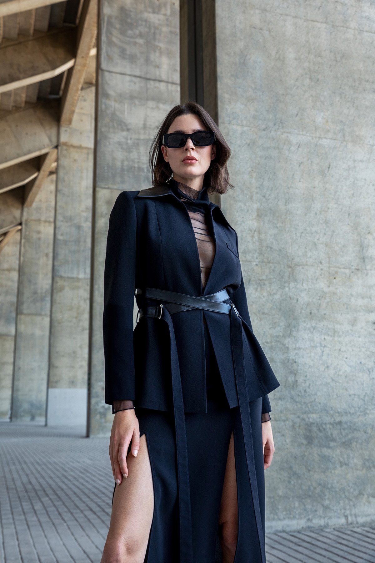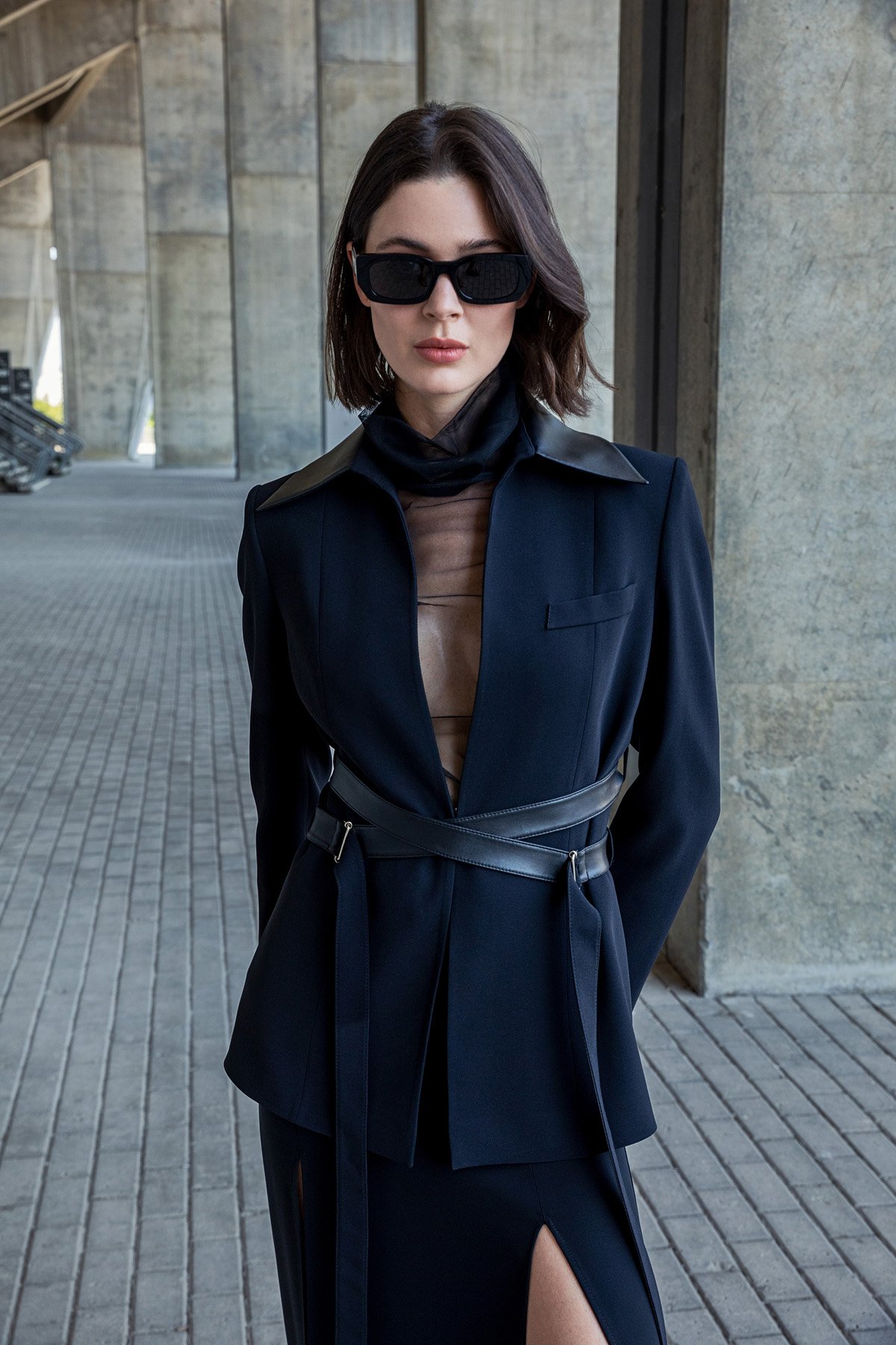 BerrIn Deri Kuşaklı Bağlamalı Ceket Siyah