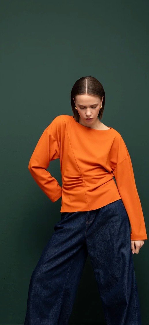 Gardırobunuza modern ve şık bir dokunuş katacak asimetrik büzgülü bluz, özel asimetrik kesimi ve özenle tasarlanmış büzgü detaylarıyla öne çıkar. Hem günlük kombinlerde hem de özel davetlerde stilinizi tamamlayan bu bluz, hafif ve nefes alabilen kumaşı sayesinde gün boyu rahat kullanım sağlar. Etek, pantolon veya jeanlerle kombinleyerek sofistike ve trend bir görünüm elde edebilirsiniz.