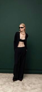 Zarif düğme detayı ve klasik duruşuyla öne çıkan geniş paça pantolon, sade şıklığı modern bir yorumla buluşturur. Normal bel kesimiyle rahat bir oturuş sağlar, aşağı doğru düz inen formu ise vücuda zarif bir siluet kazandırır. Dokuma saten krep kumaşı, dökümlü yapısıyla akıcı bir görünüm sunar. Bluz, gömlek veya blazer ceketlerle tamamlanarak hem ofis hem özel davet kombinlerinde sofistike bir görünüm yaratır.