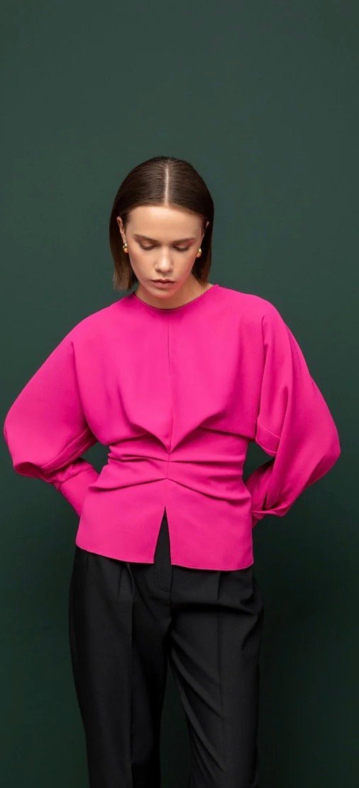 Kameya Asimetrik Büzgülü Bluz