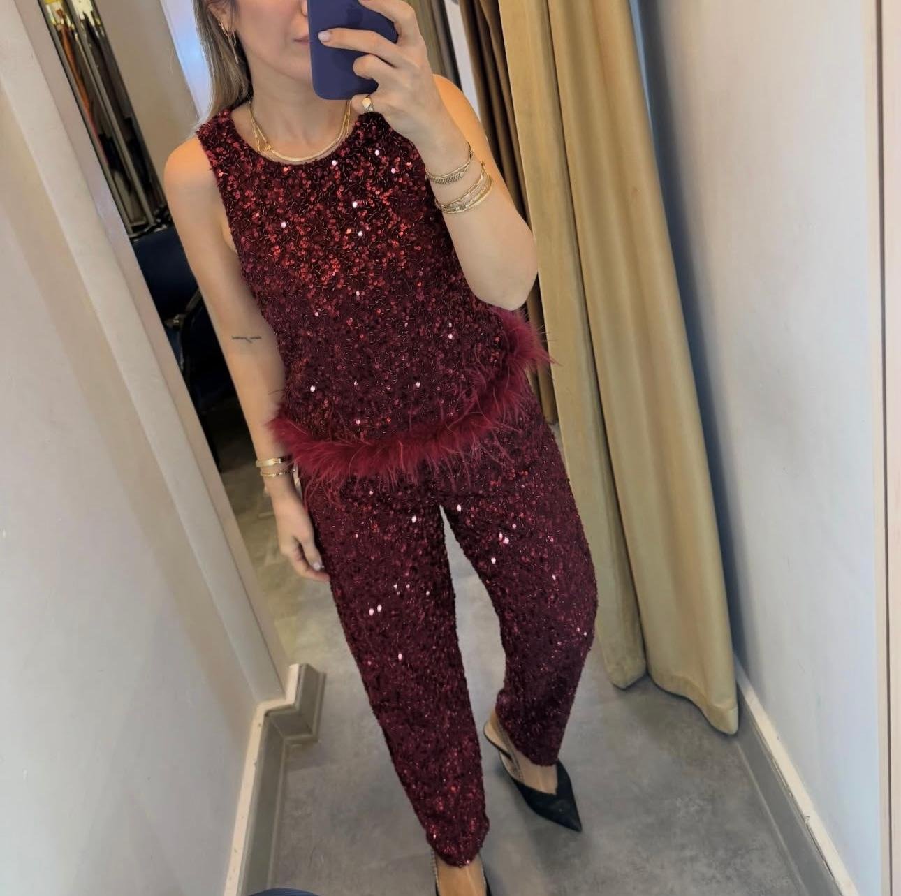 Otriş ve payetin eşsiz uyumuna sahip harika bir takım.